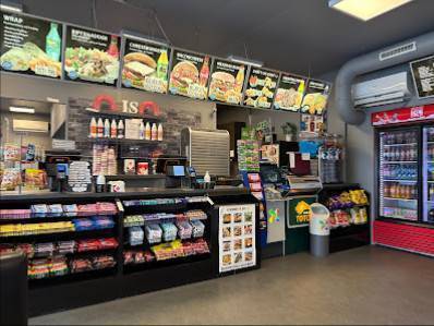 - Spesialiteter: Fast food restaurant, Dagligvarebutikk