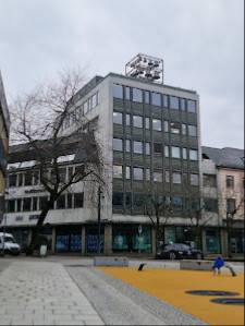 Er ikke lenger bank, men eiendommer, er et stor og fint lokale da.