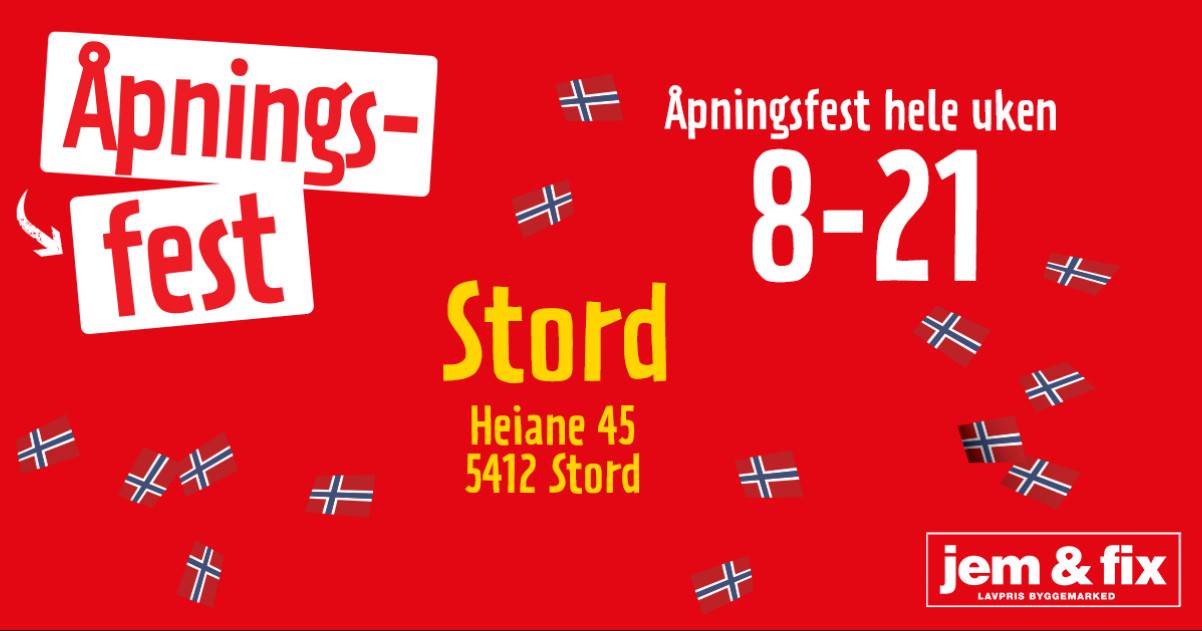 ⏰ Åpningstider for jem & fix Stord - Lavpris byggemarked
