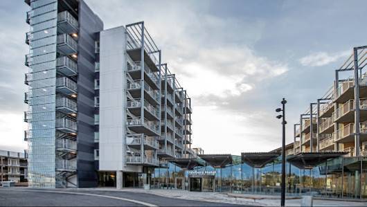 Var innlosjert i en av leilighetene på bakkeplan, med uteplass og utgang fra stuen. Tre soverom med dobbeltseng og køyesenger, bad og stue med kjøkkenkrok. Meget godt utstyrt, vaskemaskin og fullt kjøkken, egentlig alt man trenger på ett sted. Rett ved en heis som går til parkeringshuset. Hotellet lå rett ovenfor, med lobby og restaurant/bar i første etasje, heis til rommene oppover og ned til parkeringshus. Meget flott sted, kan absolutt anbefales.