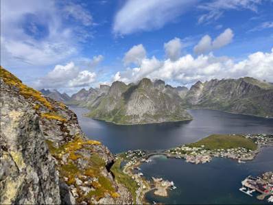 Klatringen opp til toppen kan vera utfordrande, det er bratt og etter å ha mørna låra litt så kan det hjelpe med ein pust i bakken før ein startar på dei siste meterne før "mål". For utsikten her er spektakulær. Om jeg har hørt rett så er vel dette den mest besøkte toppen i Lofoten og det kan jeg forstå. Den er lett tilgjengelig med trapper og utsikten er nydelig. Krevende tur men overkommelig for de fleste om man sørger for å puste godt hele veien og går sakte og i jevn tempo. Det var min suksess oppskrift, eller egentlig ikke min, men min makkers.