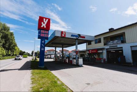 Spesialiteter: Bensinstasjon, Bildelforhandler, Bilverksted, Bakeri, Bilpleie, Bilvask.